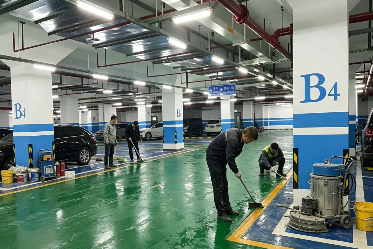 红河弥勒朋普镇车库停车场环氧地坪施工厂家